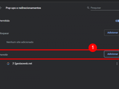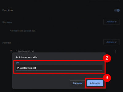 1. Clique em "Adicionar" para permitir uma nova URL;