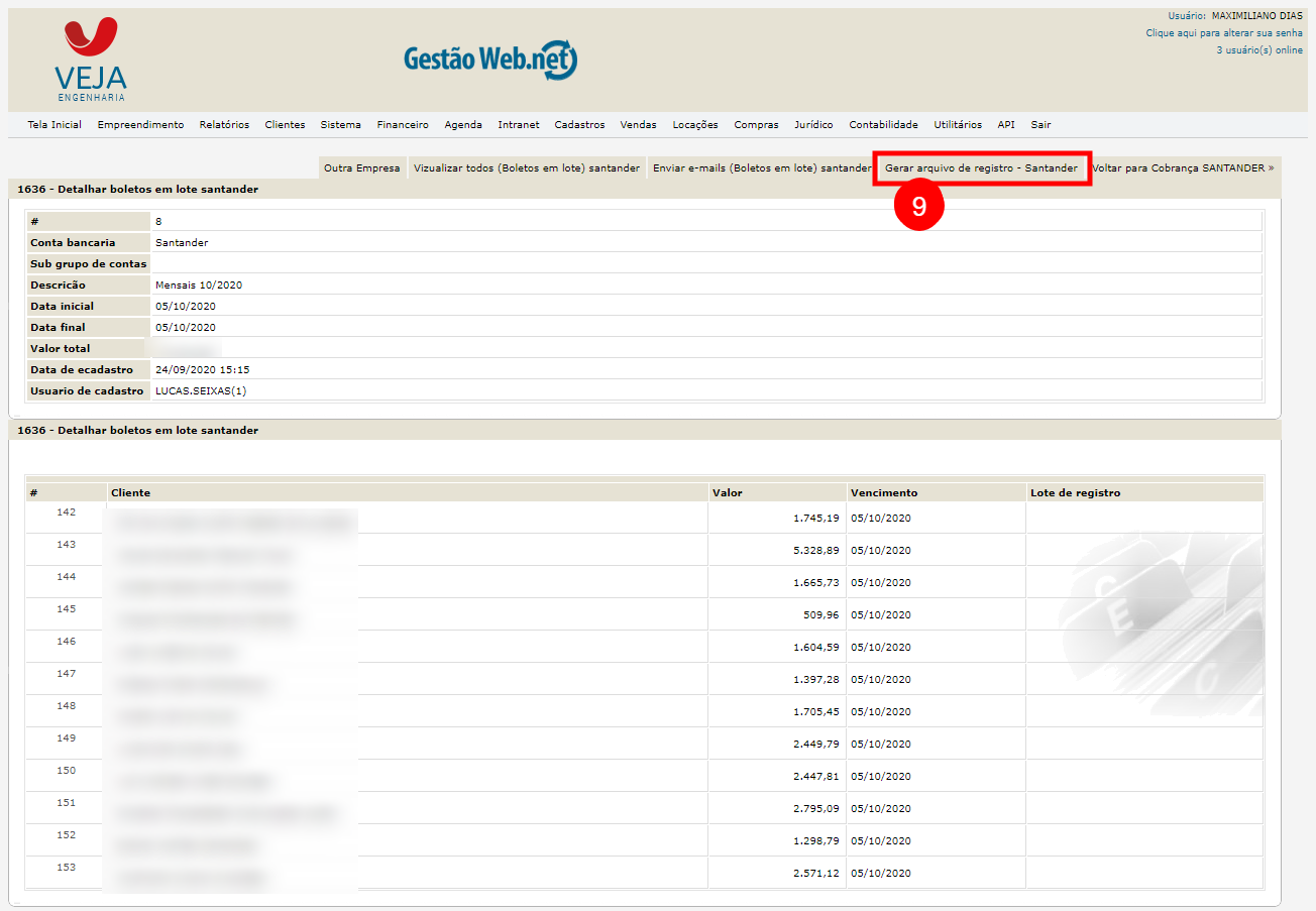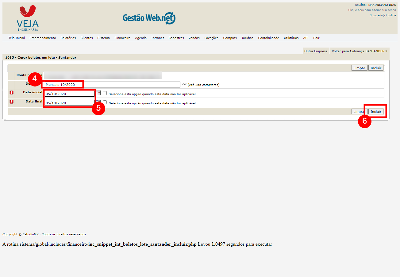 5. Digite a data de vencimento do Contas a Receber que deseja gerar os boletos;