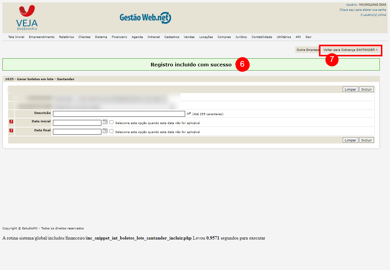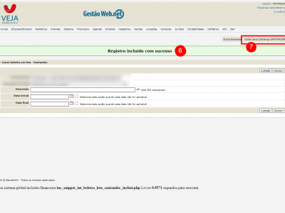 6. Clique em Incluir; Uma mensagem de sucesso deve aparecer;