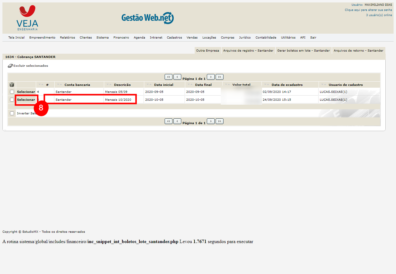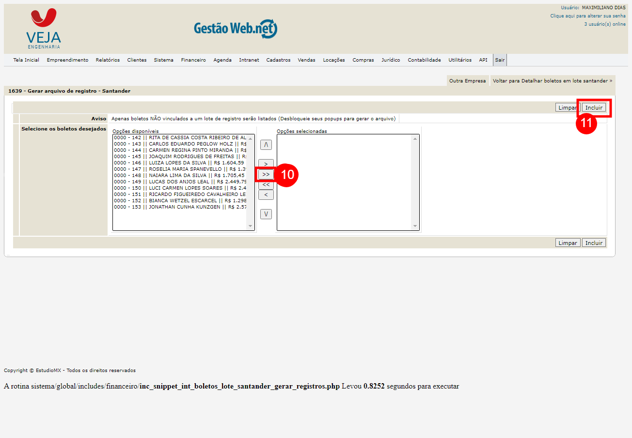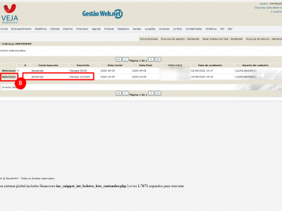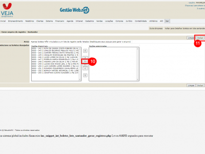 10. Clique na flechina dupla para adicionar todos os registros ou selecione somente aqueles que você deseja enviar para o banco.