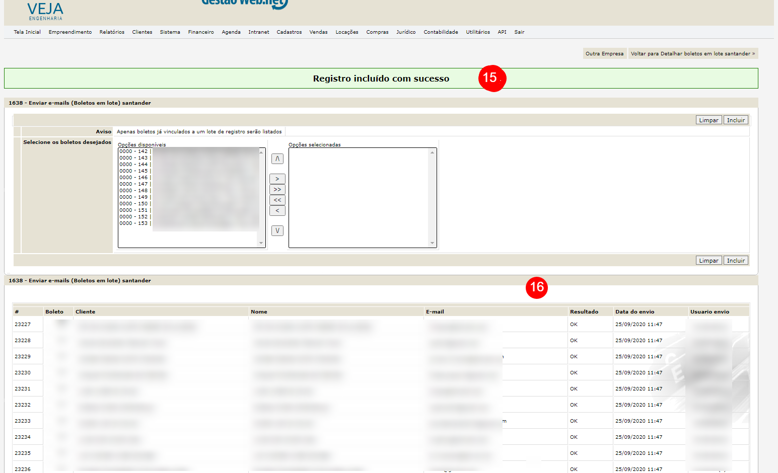 12. No dia seguinte após envio e processamento dos boletos pelo banco, você já pode enviar os boletos por e-mail.