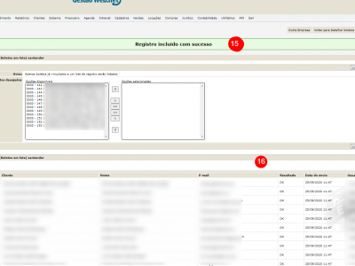 16. Você pode observar a hora de envio e o e-mail de cada cliente;