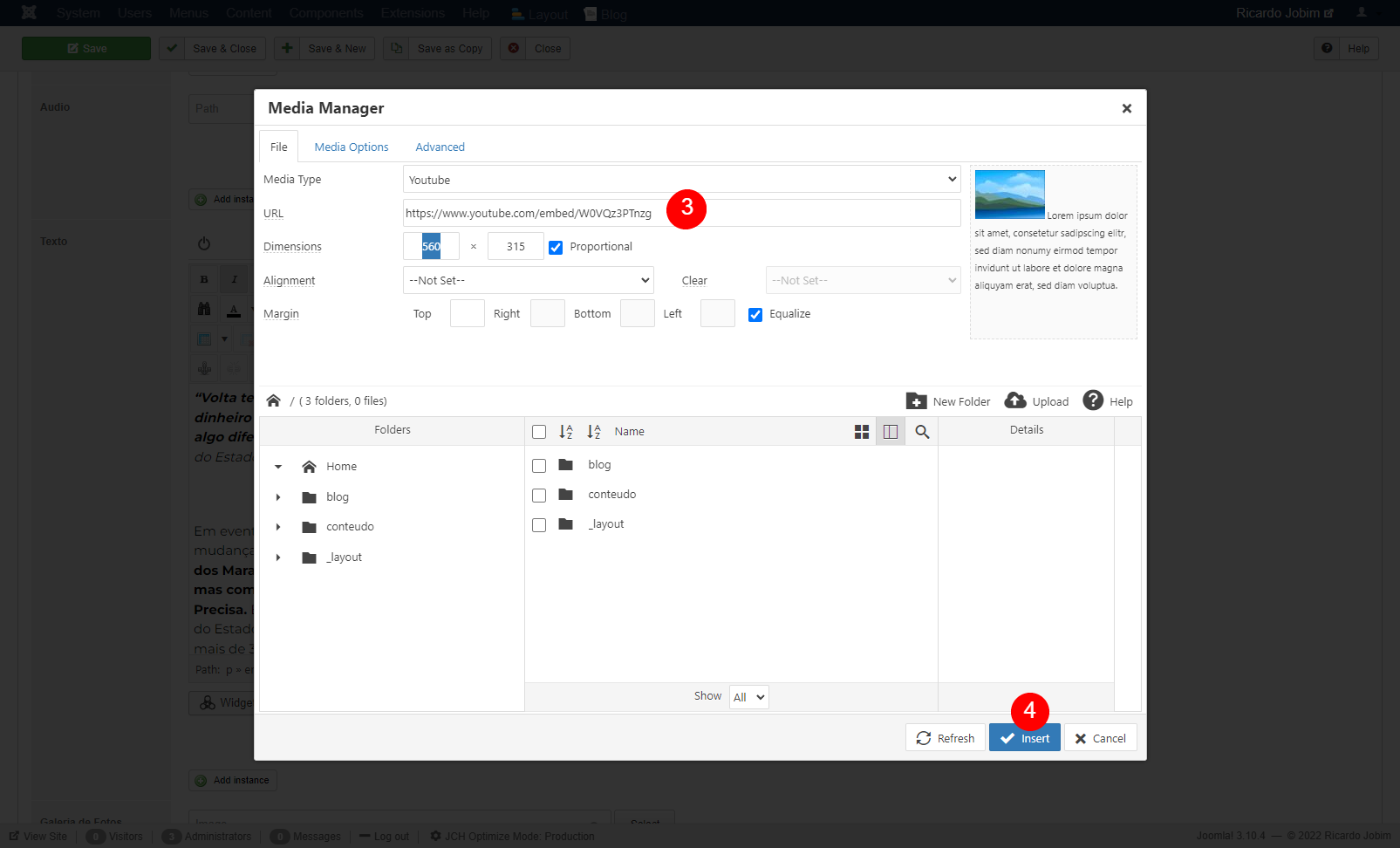 1. Posicione o cursor onde você deseja incluir o vídeo;